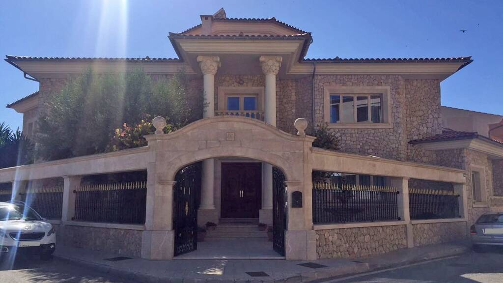 Beim Innenraumausbau wurden feinste Baumaterialien verwendet wie Marmor und tropisches Bilingaholz für die Fußböden, eine Wandstärke von 80 cm, die an Wärme- und Kältedämmung nichts zu wünschen übrig läßt und handwerklich virtuos ausgearbeitete Stuckdecken. Ein Großteil der Möblierung wie zum Beispiel dass Esszimmer stammt aus der bekannten Möbelmanufaktur Pico-Living aus Valencia. Die gesamten Schreinerarbeiten sind exzellent ausgeführt und es wurden das Esszimmer und die Empfangshalle mit ihrem repräsentativen Treppenaufgang und dreifacher Deckenhöhe mit von handgefertigen Kristalleuchtern bestückt, die im wahrsten Sinne des Wortes eines der Highlights des Hauses darstellen.