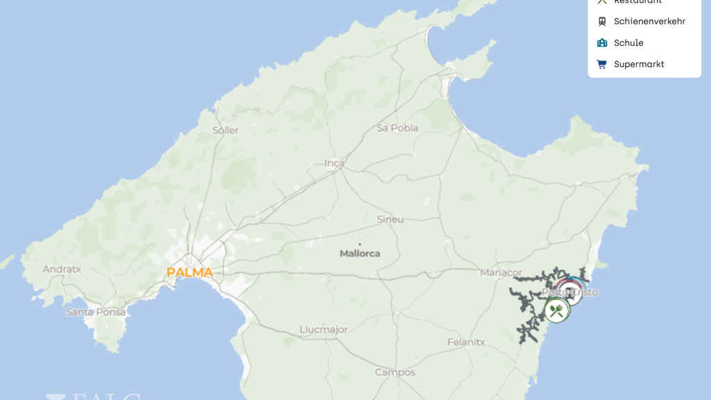 FALC - Ihre internationale Immobilienagentur mit dem Fokus auf Kundenzufriedenheit. Zahlreiche Auszeichnungen belegen unseren Anspruch. Unsere kompetenten lokalen Makler kennen den Markt auf Mallorca bis ins Detail und freuen sich darauf, Sie persönlich kennenzulernen. Überzeugen Sie sich selbst - wir sind Ihr verlässlicher Partner, wenn es um den Kauf oder Verkauf Ihrer Traumimmobilie auf Mallorca geht. Gerne lassen wir Sie von unserem weitreichenden Netzwerk professioneller Dienstleister profitieren - sei es in steuerlichen oder juristischen Fragen, bei administrativer Unterstützung oder der Betreuung Ihrer Ferienimmobilie. Bitte beachten Sie, dass sämtliche Angaben teilweise oder vollständig auf Informationen des Eigentümers beruhen. Für deren Richtigkeit können wir keine Haftung übernehmen. Die Inhalte und Bilder dieses Exposés können mit Unterstützung künstlicher Intelligenz (KI) erstellt worden sein.