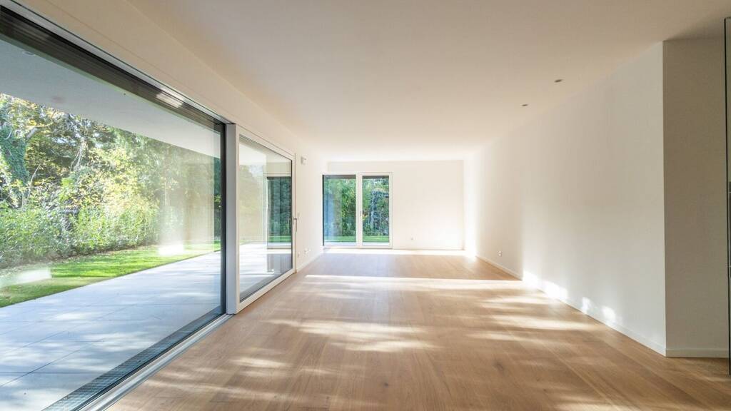 Diese Vierzimmerwohnung im Erdgeschoss bietet auf ca. 122 m2 Wohnfläche modernen Qualitätswohnraum für gehobene Ansprüche. Ein zentraler Gang führt durch die Wohnräume und endet im ca. 46 m2 großen Wohn/Ess/Kochbereich, dem großzügigen und offenen Wohnmittelpunkt. Große Glasfronten erhellen die Wohnräume mit reichlich Tageslicht und sorgen zusammen für eine freundliche Wohnatmosphäre. Der durchdachte Raumplan beinhaltet zwei Bäder, zwei WCs, Garderobe, zwei Kinderzimmer, Schlafzimmer mit Ankleide und einen Hauswirtschaftsraum samt Waschmaschinenanschluss. Zur Wohnung gehört eine ca. 66 m2 große Terrasse und ein großzügiger Garten mit ca. 288 m² - viel Freiraum für die ganze Familie. Das innovative Wohnkonzept überzeugt auf allen Ebenen mit attraktiver Architektur, perfekter Raumaufteilung und höchstem Wohnkomfort. Großzügigen Stauraum bietet zudem das ca. 12 m² Kellerabteil. Weiters sind dieser Wohnung zwei Tiefgaragenstellplätze zu je € 38.000,- zugeteilt.