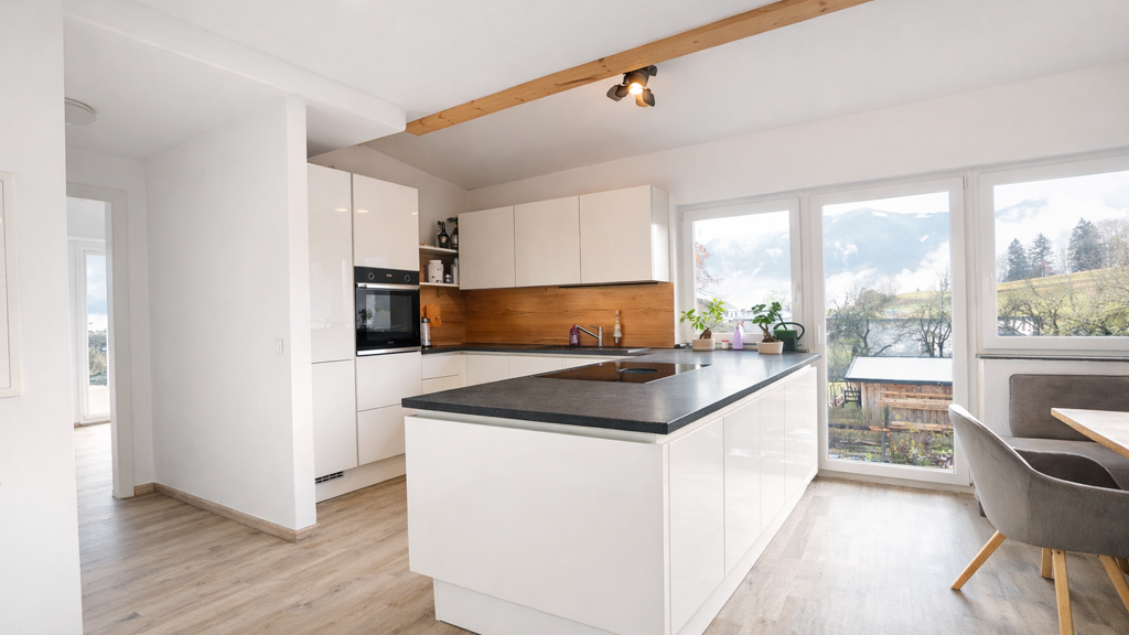 Das Obergeschoss wurde bereits renoviert und wirkt hell, freundlich und modern. Beim Betreten gelangt man in einen praktischen Vorraum mit Garderobe, von dem aus alle Räume zentral begehbar sind. Ein Abstellraum bietet zusätzlichen Stauraum.