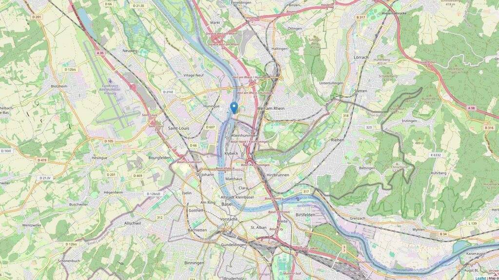 Highlight der Wohnung ist das ca. 22 m² große Wohnzimmer mit einem einzigartigen Ausblick über den Rhein bis nach Frankreich und in die Schweiz. Besonders attraktiv ist der Blick auf die Fußgängerbrücke, die das deutsche mit dem französischen Rheinufer verbindet. Der Balkon ist mit einer elektrischen Außenmarkise ausgestattet und bietet im Sommer angenehmen Schatten bei unvergleichlicher Aussicht.