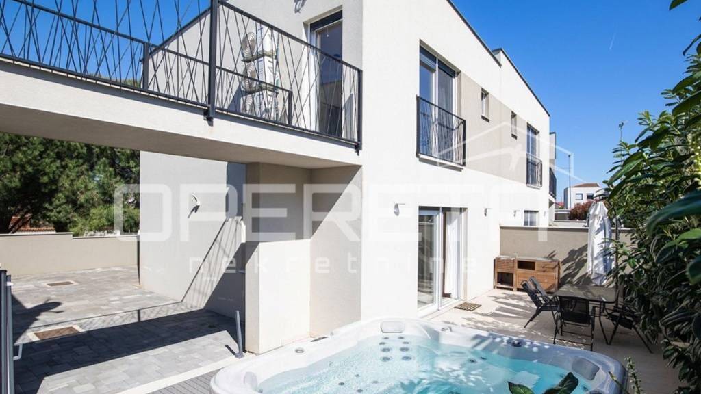 Im Rahmen des privaten Hofs befindet sich ein Jacuzzi, perfekt zum Entspannen nach einem Arbeitstag in völliger Diskretion.
