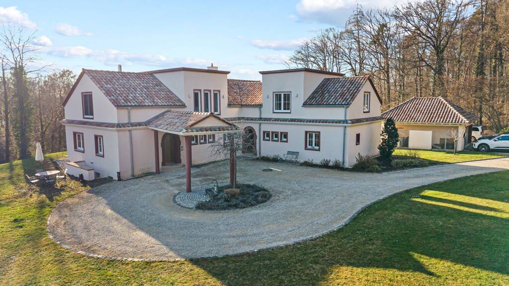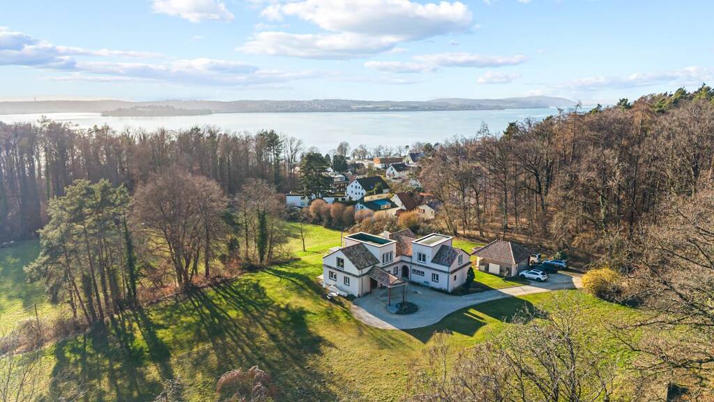 ??Dieses exklusive Anwesen in Meersburg vereint luxuriöses Wohnen mit einer unvergleichlichen Naturnähe und bietet einen Rückzugsort, der Seele und Geist gleichermaßen berührt. In absoluter Ruhe und dennoch nur etwa 300 Meter Luftlinie vom Bodensee entfernt gelegen, eröffnet sich hier ein Lebensraum auf einem beeindruckenden, insgesamt 28.287 m² großen Grundstück. Weitere Grünflächen und ein herrlicher Seeblick unterstreichen das Gefühl von Freiheit und Exklusivität inmitten einer idyllischen Landschaft. Das im Jahr 2008/2009 kernsanierte und mit viel Liebe zum Detail renovierte Haus besticht durch eine großzügige Gesamtwohnfläche von ca. 415 m², die sich auf das Erd- und Dachgeschoss verteilt. Schon beim Betreten der Räumlichkeiten spürt man die besondere Atmosphäre, die durch eine hochwertige Innenausstattung geprägt ist. Edle Böden aus Solnhofener Naturstein sowie warmes Eichen- und Walnussparkett verleihen jedem Raum eine zeitlose Eleganz und eine behagliche Wärme. Die durchdachte Aufteilung umfasst unter anderem großzügige Wohn- und Essbereiche, eine moderne Küche, mehrere Zimmer sowie ein Dachgeschoss mit Galerie, Büroflächen und einer einladenden Dachterrasse, die zum Verweilen unter freiem Himmel einlädt. Das Anwesen bietet zudem vielfältige Nutzungsmöglichkeiten für individuelle Lebensträume. Mit einer separaten Doppelgarage und einem Stallgebäude erinnert das Objekt an seine Vergangenheit, in der bis vor wenigen Jahren Pferdehaltung im Offenstall mit eigenem Reitplatz praktiziert wurde. Ergänzt wird das Raumangebot durch eine großzügige Nutzfläche im Untergeschoss, die weiteren Spielraum für Hobbys oder Lagerzwecke bietet. Hier finden anspruchsvolle Käufer nicht nur ein Haus, sondern ein Zuhause, das hohe Lebensqualität mit der Ruhe der Natur und der direkten Nähe zum See auf einzigartige Weise verbindet.