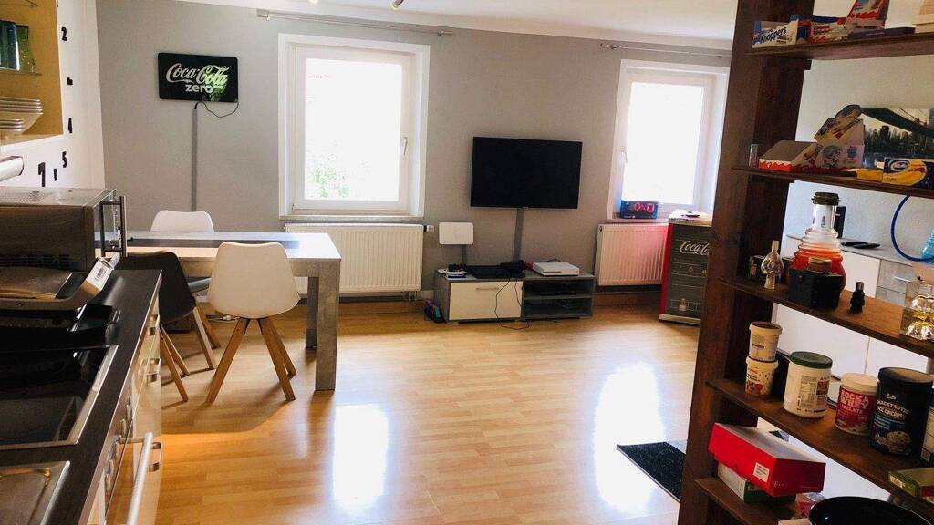Teilweise weiße Kunststoff-Fenster, die Bodenbeläge im Wohnzimmer, Küchenbereich, Flur und Schlafzimmer sind mit hellem freundlichen Laminat ausgestattet, hell gefliestes Badzimmer mit weißer Sanitärausstattung, Eingangsbereich und Abstellraum sind gefliest. Die moderne Küche inkl. Cerandfeldherd, Backofen, Kühl-Gefrierschrank und Spülmaschine wäre für € 500,-- abzulösen. Beheizt wird die Immobilie über eine zentrale Gasheizung, das Warmwasser für die Küche und das Bad wird mit einem Elektroboiler erzeugt. Ein kostenloser Freistellplatz direkt an der Eingangstüre rundet dieses interessante Immobilienangebot ab. Fernsehen über vorhandene SAT-Anlage. Internet über Telekom möglich.