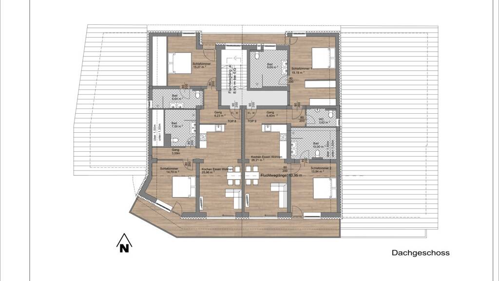 Das Ferienappartement Top 06 besteht aus einem großen Wohn- Küchenbereich, zwei geräumigen Schlafzimmern und zwei komplett ausgestatteten Badezimmern mit WC, Waschbecken, Waschbeckenunterschrank, LED Spiegel und eben begehbarer Rainshower-Dusche wovon ein Badezimmer en suite begehbar ist.