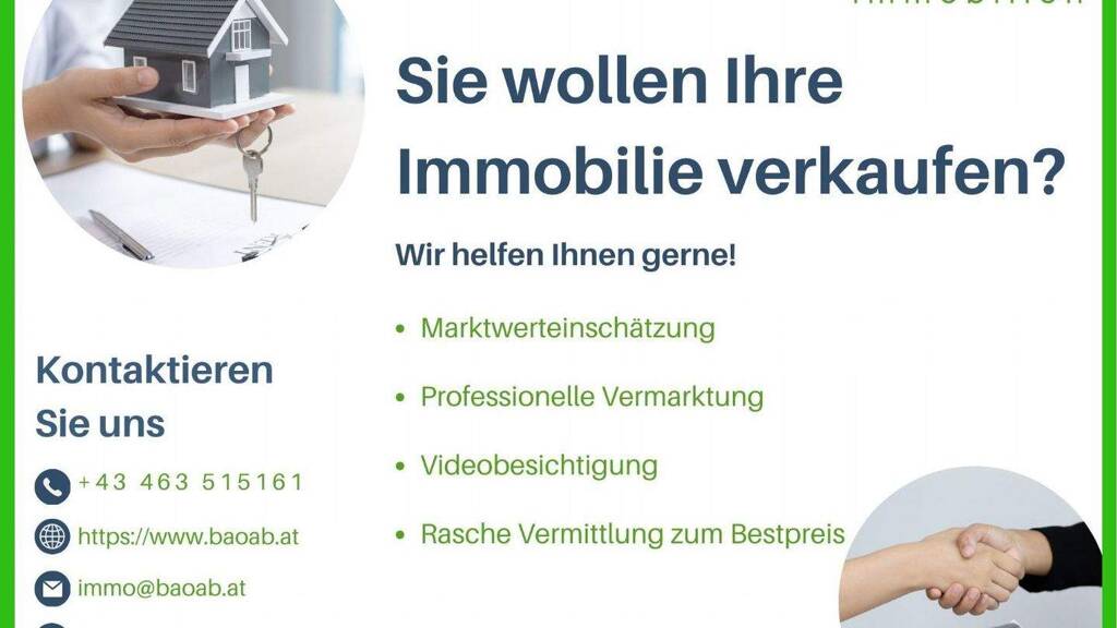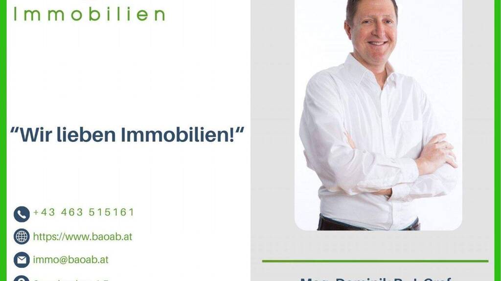 Gerne stehen wir Ihnen für Fragen bzw. einen unverbindlichen Besichtigungstermin zur Verfügung (+43 463 51 51 61). Weitere Bilder bzw. Liegenschaften finden Sie auf unsere Homepage unter www.baoab.at .