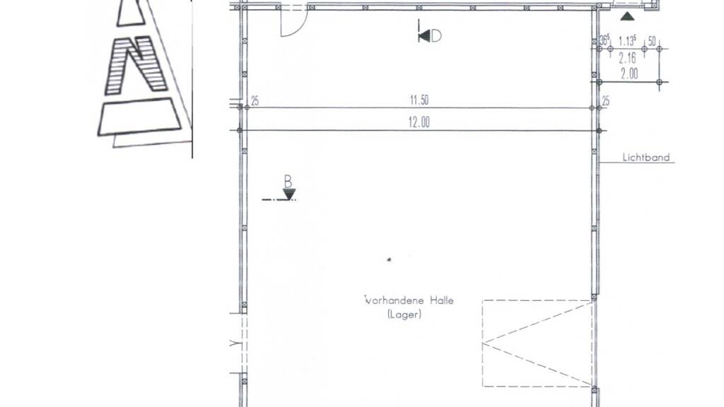 Die Halle ist mit drei Toren bestückt, hat eine Fläche von ca. 309 m² und wird derzeit noch vom Eigentümer genutzt. Die bereits außer Betrieb genommene angrenzende Bäckerei mit Gastraum kann sofort in Betrieb genommen werden.