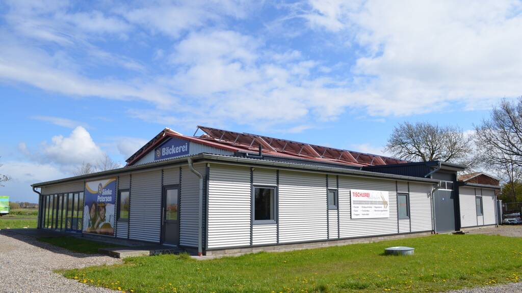 Wir bieten Ihnen am Ortsausgang von Klixbüll eine Halle und eine dazugehörige angrenzende Bäckerei mit Gastraum an, die mit einer Photovoltaikanlage bestückt ist.