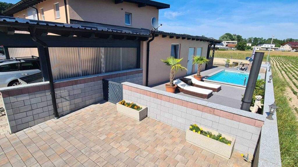 Die Immobilie bietet zudem ausreichend Stellplätze. Ein Carport, eine Garage sowie zusätzliche Parkplätze sind vorhanden, sodass sowohl Bewohner als auch Gäste stets bequem parken können. Eine Luftwärmepumpe sorgt für effiziente Wärme und trägt zu einem umweltfreundlichen Lebensstil bei.