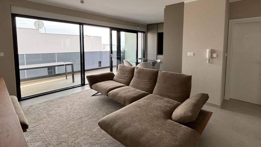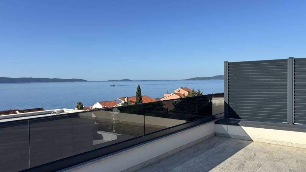 Das Penthouse befindet sich im zweiten Stock eines modernen Neubaus mit Süd- und Nordausrichtung. Dies sorgt für viel Tageslicht und einen wunderschönen Meerblick im Wohnbereich sowie ein angenehmes Klima in den Schlafzimmern. Die Wohnung hat eine Wohnfläche von 53,07 m und besteht aus zwei Schlafzimmern, einem Badezimmer, einer Küche, einem Esszimmer und einem Wohnzimmer mit Zugang zu einer 12,71 m großen Loggia mit Meerblick. Der größte Vorteil dieser Immobilie ist die großzügige Dachterrasse von 68,90 m, die einen spektakulären Panoramablick auf das Meer und die umliegenden Inseln bietet ein idealer Ort für geselliges Beisammensein im Freien. Die verglaste bioklimatische Pergola ist ideal für ganzjähriges Wohnen und bietet Öffnungen für den Einbau einer Sommerküche und einer Massagewanne.