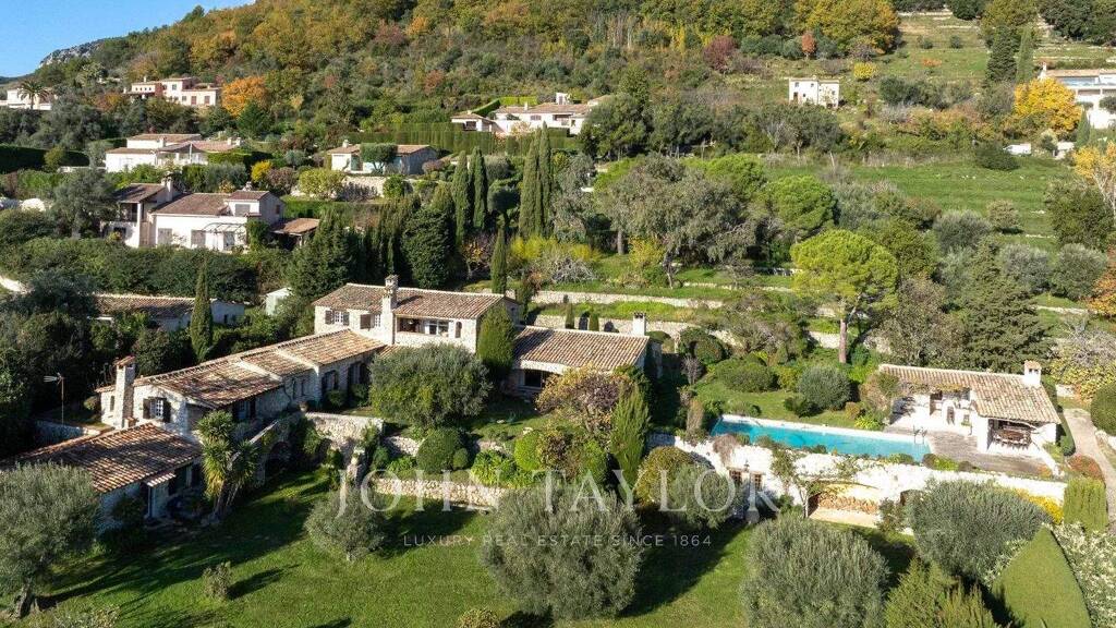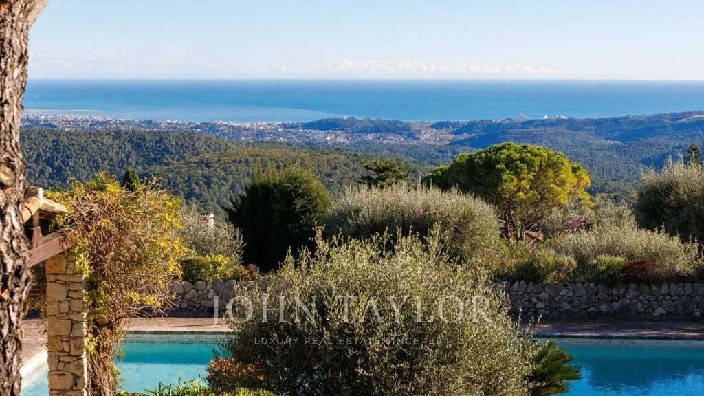 In beherrschender Lage und nur wenige Schritte vom charmanten, lebhaften Dorf Tourrettes-sur-Loup entfernt, erstreckt sich dieses majestätische Steinbastide von ca. 350 m² auf einem wunderschönen Grundstück von ca. 5600 m² mit weitläufigen, ebenen Flächen. Sie bietet einen atemberaubenden Panoramablick auf das Meer. Ihr authentischer Charme, der durch edle Materialien und eine zeitlose Architektur veredelt wird, verleiht dieser Immobilie einen einzigartigen Charakter.