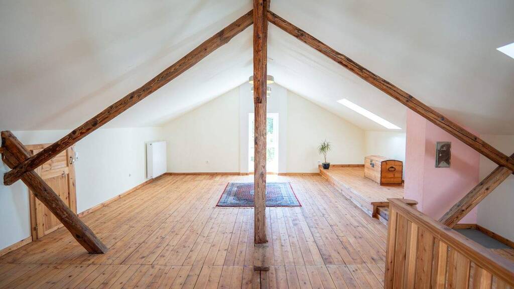 Das ausgebaute Dachgeschoss rundet das Raumangebot ab: Hier eröffnen sich zahlreiche Möglichkeiten – ob als zusätzliches Schlafzimmer, Atelier, Rückzugsort oder großzügiger Wohnbereich für die Familie.
