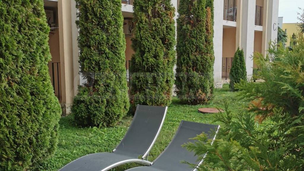 Wir bieten eine möblierte Wohnung mit Veranda zum Verkauf an, die sich im Erdgeschoss in einem Komplex in der Nähe von Saint Vlas befindet.