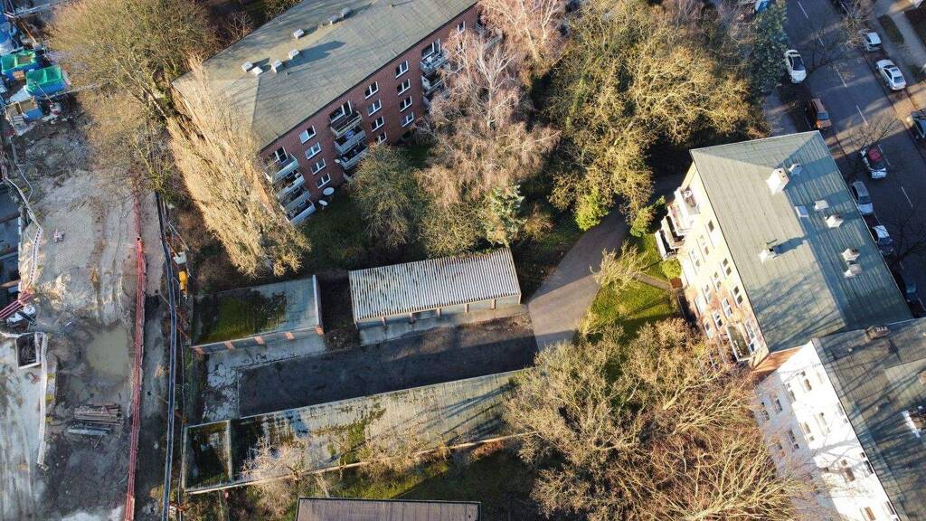 Die Abtrennung des Garagenhofes der letztlich und nach Abriss der Garagen der Bauplatz ist, wird nach WEG erfolgen. Die aktuell vorhandene Zufahrt zum Garagenhof wird nach Neubau auch die Zufahrt zur Tiefgarage und Zuwegung zum Neubau sein. Das Baugrundstück grenzt rückwärtig an eine parkähnliche Grünfläche an. Unter dieser Fläche wurde in den letzten Jahren die Erweiterung der U4 errichtet. Die derzeitige NKM die 21 Garagen beträgt € 20.605,-- p.a.