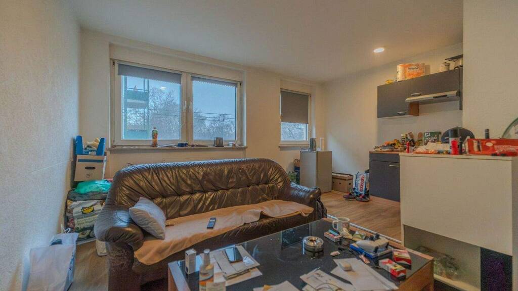 Die vermietete 2-Zimmer-Wohnung befindet sich im 1. Obergeschoss eines Mehrfamilienhauses aus dem Jahr 1956. Mit rund 41?m² Wohnfläche bietet sie eine kompakte, gut geschnittene Raumaufteilung mit offenem Wohn-, Ess- und Küchenbereich. Die Wohnung wurde 2023 umfassend renoviert. Dabei wurden moderne Bodenbeläge verlegt, Wände neu gestrichen und eine hochwertige Einbauküche installiert. Das innenliegende Badezimmer ist mit einer Badewanne ausgestattet und wurde im Zuge der Renovierung teilweise erneuert.