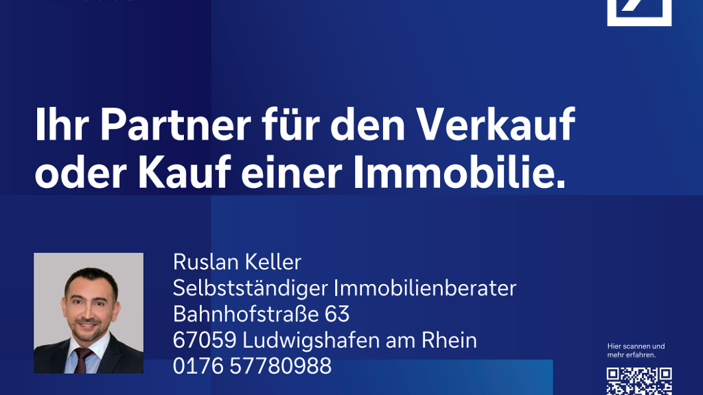Rechtlicher Hinweis auf den Urheber des Exposés Ruslan Keller Selbstständiger Immobilienberater Heßheimer Straße 50 67227 Frankenthal (Pfalz) E-Mail: ruslan.keller@db.com Telefon: 0176 57780988