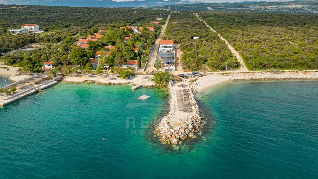 Direkt am Meer. Ruhige Seitenstraße, kein Durchgangsverkehr. Vor dem Tor nur ein kleiner Weg, dahinter: das Wasser. Die Umgebung ist geprägt von Natur und wenigen Nachbarn. Alles wirkt entspannt. Mandre zeigt sich hier von seiner besten Seite - unverbaut, grün, ursprünglich. Und doch nicht ab vom Schuss. Fünf Fahrzeuge haben bequem Platz auf dem Grundstück.