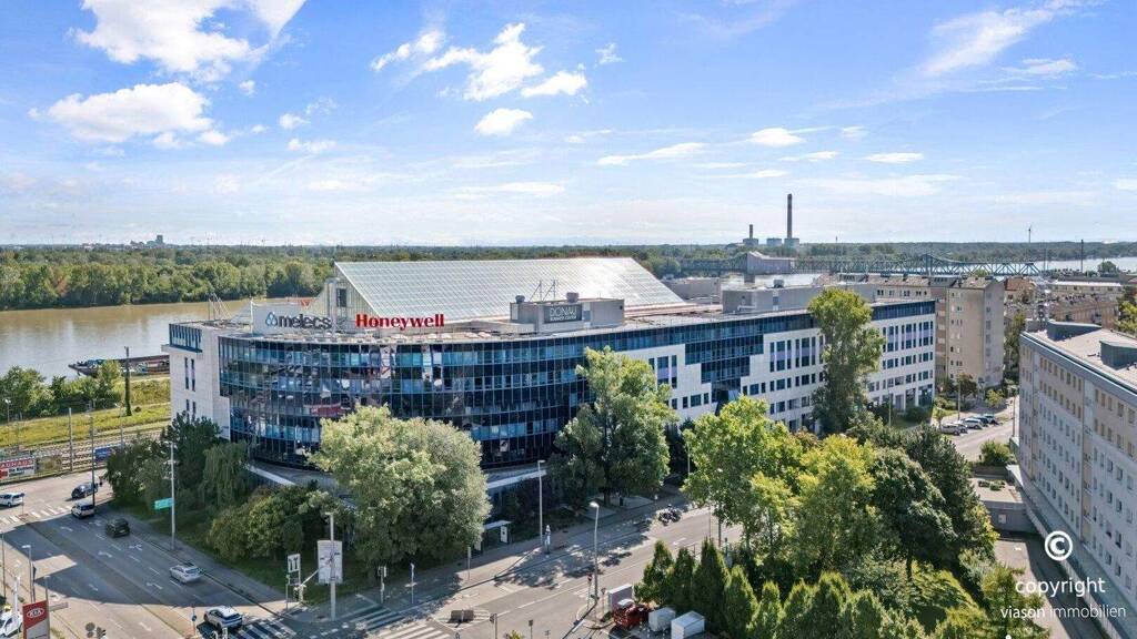 Das DONAU BUSINESS CENTER umfasst 6 Ebenen mit insgesamt ca. 22.000 m² Büro- und Geschäftsflächen und eine Tiefgarage im Haus.