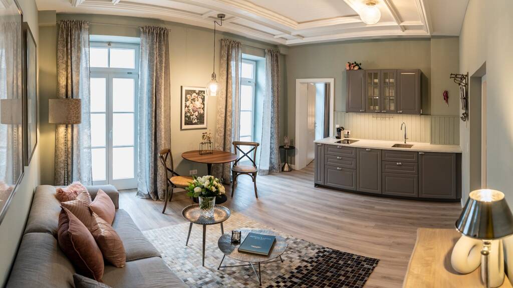 Das "Cosy Garden" ist ein geräumiges 2-Zimmer Apartment mit en suite Bad. Die große Küchenzeile bietet alles, um ein ordentlichen Essen zu zaubern. Im Wohnbereich finden Sie eine gemütliche Couch zum Entspannen, einen gemütlichen Essplatz sowie den Zugang zur sonnigen Terrasse des Apartments. Im Schlafzimmer findet sich ein großes Boxspringbett und genügend Stauraum und das en suite Badezimmer erwartet mit großer walk-in Regendusche.