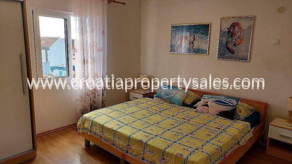 Das Erdgeschoss besteht aus 3 voll ausgestatteten Apartments mit einem Schlafzimmer, von denen jedes über eine eigene kleine Terrasse verfügt. Im ersten Stock befindet sich ein Apartment mit einem Schlafzimmer und einer schönen Südterrasse mit Meerblick.