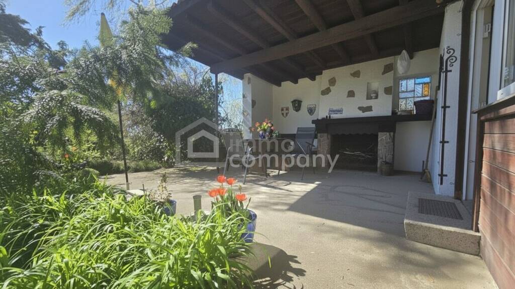 Vom Wohn-Esszimmer haben Sie den direkten Zugang zur überdachten Terrasse mit Kamin.