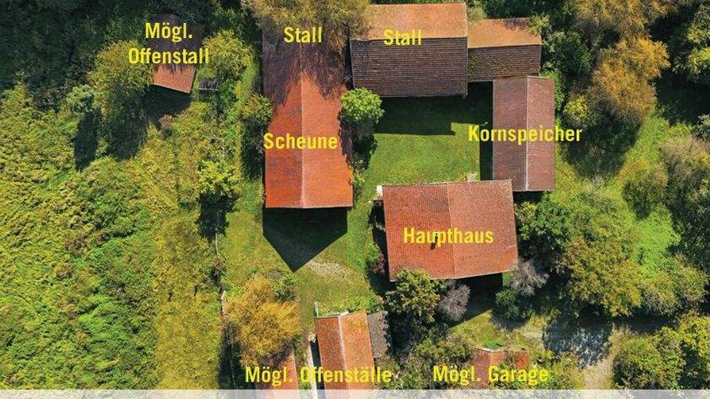 I. Allgemeines zu diesem Hof in herrlichster Alleinlage: - Typischer, "stattlicher" Rottaler Vierseithof mit viel Charme und ebensoviel Potenzial - Allein das Haupthaus hat die hier angegebenen ca. 317 m² Wfl. (große Zimmer) - Ausbaupotenzial für weitere ca. 400 m² bis 500 m² Wfl. (bis zu 7 Wohneinheiten) im ehemaligen Kornspeicher und Stall möglich (Wohnungen, Atelier, Studio usw.) Anmerkung zum Ausbaupotenzial: Nach einer aktuellen Begehung mit dem Amt für Denkmalschutz und dem zuständigen Landratsamt als obere Baubehörde wurde die Möglichkeit zum Ausbau des Hofes in bis zu 7 Wohneinheiten "offizell" in Aussicht gestellt. - geschlossener, ca. 400 m² großer Innenhof - Wohnhaus und der Kornspeicher (westl. Gebäude) - vermutlich Baujahr 1820/30 - stehen unter Denkmalschutz - evtl. werden die Scheune und der ehemalige Kuhstatt als Denkmal nachqualifiziert - Gebäuden wurde eine gute gute Grundsubstanz beschieden