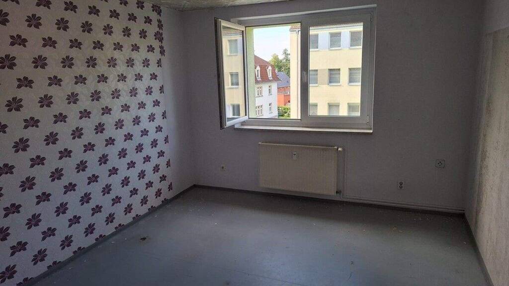 Die unrenovierte 3 Zimmerwohnung liegt in der 2.Etage des Mehrfamilienhauses mit 8 Hausparteien. Mindestmietdauer 12 Monate.