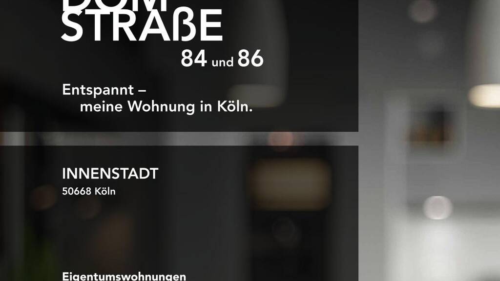 In der Stadt pulsiert das Leben. Das zentrumsnahe Kunibertsviertel erstreckt sich zwischen Rhein, Theodor-Heuss-Ring, Turiner Straße und Kölner Hauptbahnhof. Hier sind Hochschule für Musik und Tanz und das Institut der deutschen Wirtschaft ansässig. Das Kunibertsviertel wird von den beliebten Veedeln Eigelstein- und Agnesviertel umgeben. Ladengeschäfte, Restaurants aller Art, Cafés, Bars und kleine Hotels prägen das Bild. Die Domstraße, eine Seitenstraße zu den Hauptverkehrsachsen des Viertels, liegt im Stadtbezirk Innenstadt / Stadtteil Altstadt-Nord. Die Straße führt von Norden genau auf den Dom zu. Wenige Meter sind es bis zur Neusser Straße und zum Eigelstein. Hier befinden sich alle wichtigen Einkaufs-Locations. Die Anbindung an den öffentlichen Nahverkehr ist mit einigen Stadtbahnlinien und Buslinien an den Haltestellen am Ebertplatz hervorragend. Über den Ring gelangt man in wenigen Gehminuten zur S-Bahnstation Hansaring. Zum Dom und Hauptbahnhof sind es rund 15 Minuten zu Fuß. Nur eine Straßenquerung trennt die Domstraße vom Theodor-Heuss-Park, der als grüne Oase mit Weiher gerade im Sommer zum Entspannen und Verweilen einlädt. Ihre persönliche Relax- und Sportzone liegt fast vor der Haustür. Der Rhein ist in wenigen Minuten fußläufig zu erreichen. Der Tag kann entspannt beginnen.
