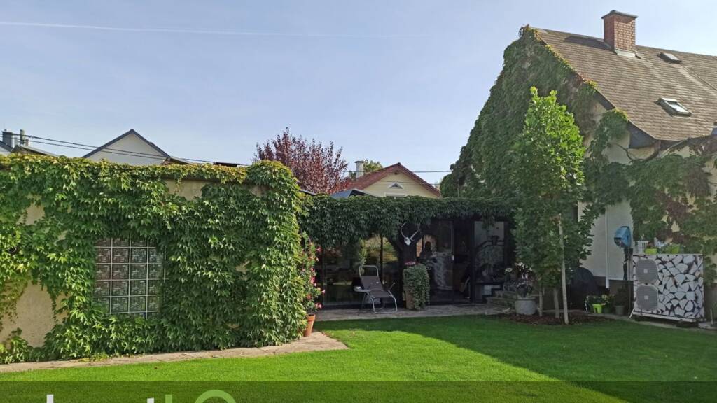 Der herrliche, nordwestseitige Garten weist wunderbare Freiflächen, mit einzelnem, schattenspendendem Baumbestand auf und bietet, neben einer Holzblock-Außensauna für bis zu 8 Personen, auch einen Außenpool mit Domüberdachung und eigener Wärmepumpe.