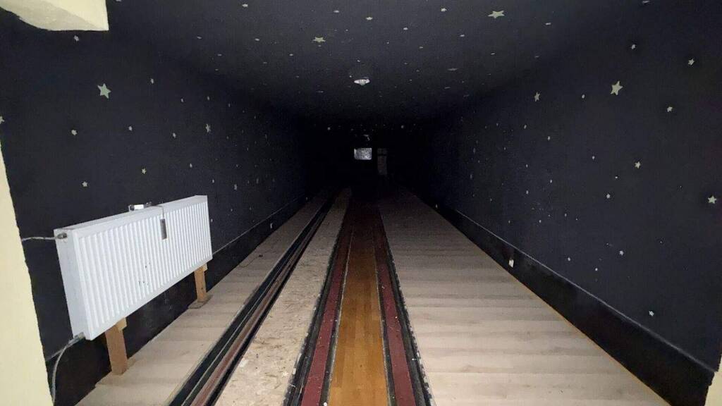 Die Fläche verteilt sich auf einen großzügigen Gastraum im Erdgeschoss sowie einen separaten Eventbereich mit Kegelbahn im Untergeschoss, der sich ideal für private Veranstaltungen, Vereinsabende oder Firmenfeiern eignet.