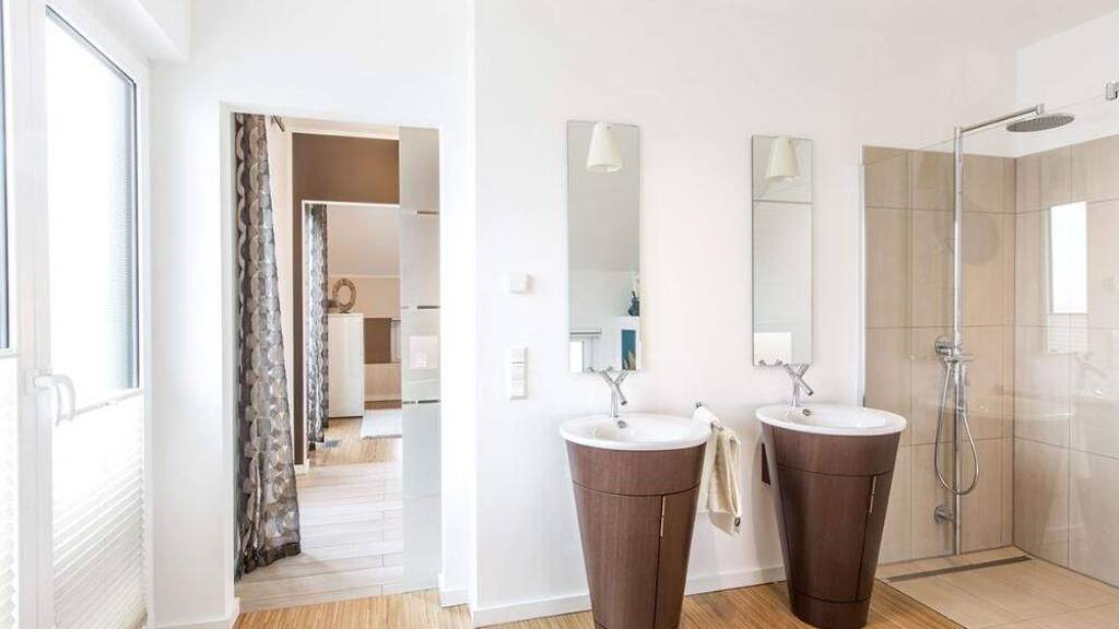 Das moderne Einfamilienhaus ist ein energiesparendes Fertighaus in Holzständerbauweise, das mit moderner Technik ausgestattet ist. Es verfügt über eine Fußbodenheizung sowie eine kontrollierte Be- und Entlüftungsanlage.