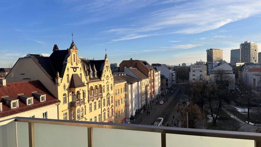 Besonders hervorzuheben ist der einerseits nach Osten hin und andererseits nach Süden hin freie Ausblick über die Innenstadt von Linz. Gerade nach Süden über den Park ist die Aussicht von der Loggia besonders schön.