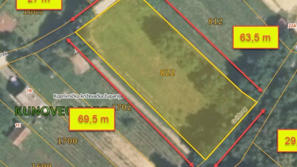 Zum Verkauf steht ein Grundstück in Kunovec Breg mit einer Gesamtgröße von 1.864 m2.