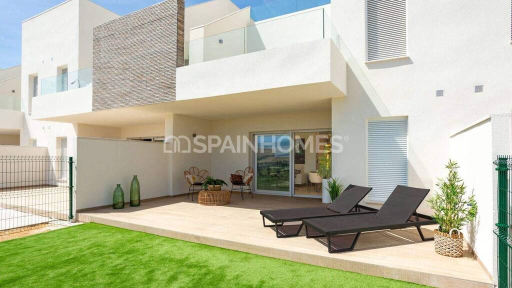 Brandneue Wohnungen in einem Golfplatz in Algorfa Alicante Die modernen Wohnungen befinden sich in der schönen Ortschaft Algorfa. Die Region ist vor allem für ihre schöne Umgebung, die weltbekannten Golfclubs und die Nähe zu den wichtigsten Städten der Costa Blanca bekannt. Die Wohnungen zum Verkauf in Algorfa befinden sich in einem Golfplatz der Spitzenklasse mit 18 Löchern. Die Anlage liegt nur 2 km vom Zentrum von Algorfa und allen Annehmlichkeiten entfernt, die das Stadtzentrum zu bieten hat. Hier finden Sie erstklassige Restaurants, Freizeitzentren, Tapas-Bars usw. Zu den herrlichen Stränden von Guardamar del Segura sind es nur 15 Minuten und nach Torrevieja 20 Minuten mit dem Auto. Die Flughäfen Alicante und Murcia Corvera sind nur 45 Autominuten von den Wohnungen entfernt. Die Wohnanlage verfügt über einen großen Gemeinschaftspool und landschaftlich gestaltete Gemeinschaftsbereiche. Die gut durchdachten Wohnungen sind in zweistöckigen Bungalows in Algorfa Alicante verteilt. Die Wohnungen verfügen über großzügige Innenräume wie ein offenes Wohnzimmer, eine Küche und einen Essbereich, ein Gästeschlafzimmer, ein Gästebad, ein Hauptschlafzimmer, ein eigenes Bad usw. Die Wohnungen im Erdgeschoss verfügen über geräumige Terrassen und große Privatgärten. Die Penthouse-Wohnungen verfügen über eine große Terrasse und Zugang zu einer großen privaten Sonnenterrasse. ALC-0269