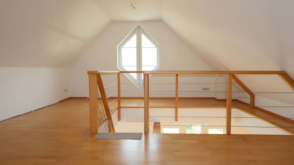 .Ca. 180 m² Wohnfläche .2-OG .4 Zimmer .Großer offener Wohnraum mit Kamin. .1-Schlafzimmer mit Ankleideraum .2-weitere Zimmer zur freien Nutzung .1 Bad mit Badewanne und Dusche, Tageslicht F. .1-Duschbad, Tageslicht Fenster .1-Küche mit EBK (Optional) .1-Hauswirtschftsraum .Großzügige, offene Raumaufteilung .Offene Galerie .Optimal nutzbar als Büro, Home-Office, Galerie .Großer Dachboden zusätzlich zur Nutzung. .Wintergarten .Offener Kamin .Große Fensterflächen mit viel Tageslicht .Maisonette über zwei Ebenen .Stellplätze .Bezugsfrei