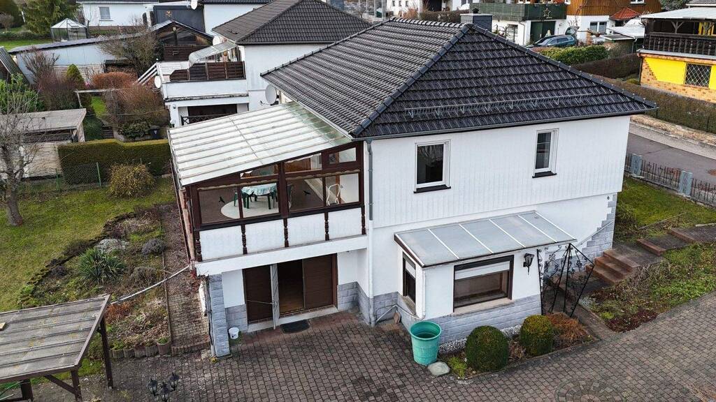 Besonders hervorzuheben ist der helle Wintergarten, der einen wunderschönen Blick ins Grüne eröffnet und zu jeder Jahreszeit ein Ort der Entspannung ist. Von hier aus genießt man eine beeindruckende Aussicht über Seebach bis hin zu den Wartbergen. Die vorhandene Fassadenverkleidung im Obergeschoss besteht aus Asbestzementplatten, was zur Bauzeit eine übliche Konstruktion war. Bei unbeschädigtem Zustand und unveränderter Nutzung besteht keine Verpflichtung zur Entfernung.