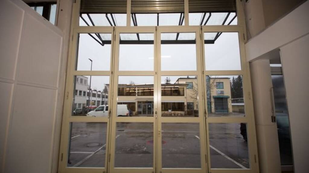 Die Anfahrtszone innerhalb der Vorhalle rechts zum Aufzug ist vollständig überdacht, linke Halle mit kleinerem Vordach