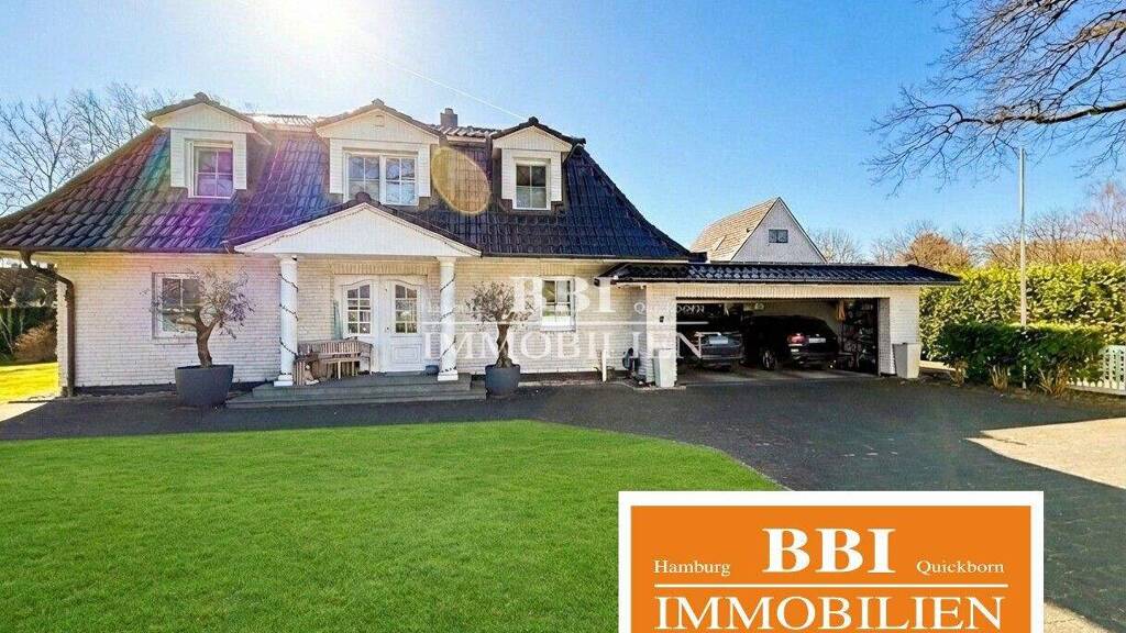 Abgerundet wird dieses außergewöhnliche Angebot durch eine großzügige Garage für 2-3 Fahrzeuge, zusätzlichen Carport sowie weitere Stellplätze - ideal für anspruchsvolle Haushalte mit Platzbedarf.
