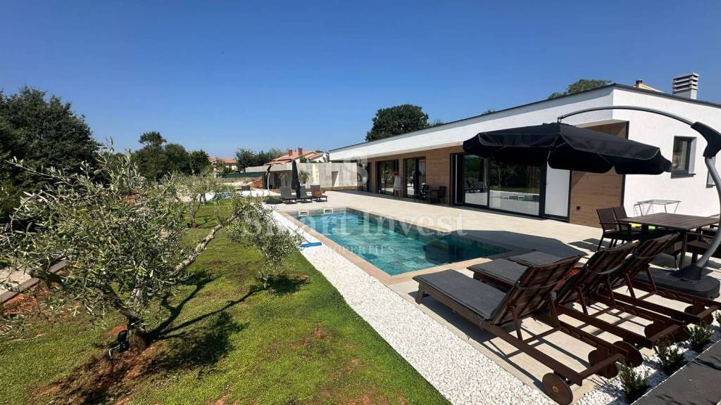 Ein neues, modernes, einstöckiges Haus (208 m) mit Pool, zwei Ferienwohnungen und einem wunderschönen mediterranen Garten (800 m) befindet sich unweit von Labin und Rabac an der Ostküste Istriens. Es besteht aus zwei separaten Ferienwohnungen mit Zugang zum Garten und einem gemeinsamen Pool mit Sonnenterrasse. Das Haus ist ideal für den Tourismus. Es liegt ruhig unweit von Labin und nur wenige Minuten von allen Annehmlichkeiten Geschäften, Kindergärten und Schulen entfernt.