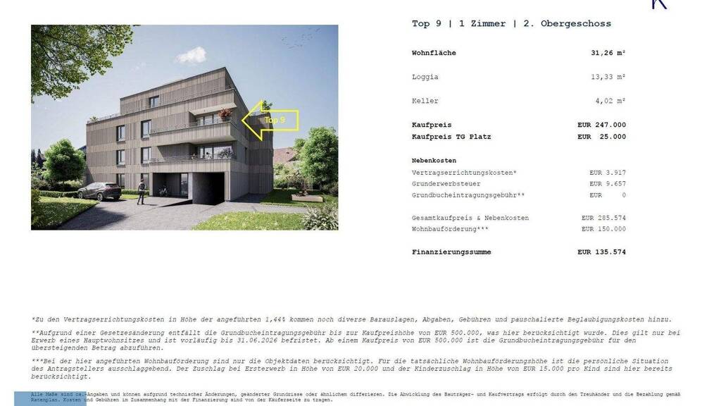 Kaufpreis: € 247.000,- TG-Stellplatz: € 25.000,-