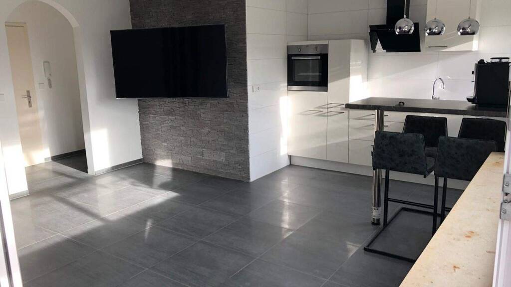 In the apartment itself you have a separate bedroom with a large bed, which is separated from the living room by an extraordinary partition (loft ambience). In the living and dining area there is a TV (75 inches), a table for 4 people, an open kitchenette and a closet. There is also a sofa bed that can be converted for another 2 people. The kitchen with all equipment (fridge, dishwasher, stove, oven, dishes, pots, pans etc.) is ready, in addition there is a Nespresso coffee machine with different types of coffee and espresso and a selection of tea. In the bathroom there is a shower cabin, washing machine, sink and of course a toilet. If you have forgotten something during your trip, shampoo, shower gel, deodorant and a hair dryer are available for you in the bathroom.