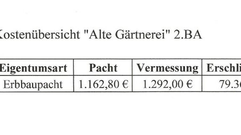 jährliche Erbbaupacht und die Erschließungskosten finden.
