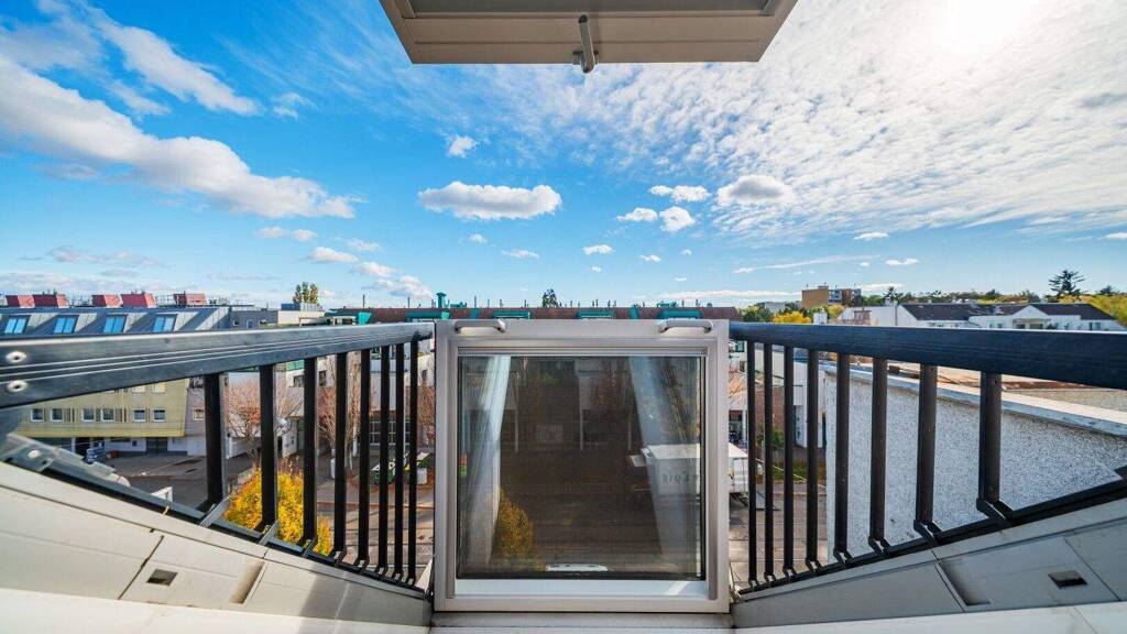 Das Schlafzimmer mit ca. 20 qm verfügt über ein besonderes Highlight: ein Cabrio-Fenster - ein spezielles Dachfenster, das sich zu einem kleinen, balkonähnlichen Austritt öffnen lässt. Dadurch entsteht ein Freiraum, in dem man durch ein ausklappbares Geländer geschützt heraustreten kann. Das Fenster bietet viel Licht und Luft im Dachgeschoß, ähnlich wie ein Balkon.