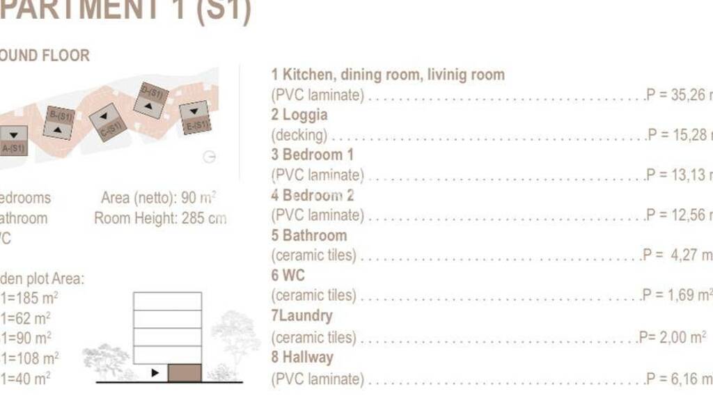 U neposrednoj blizini povijesnog grada Trogira, gradi se novi stambeni kompleks s pet moderno izgradenih zgrada (A, B, C, D, E), smjesten u mirnom sjevernom dijelu Segeta Donjeg.Okruzen zelenilom i osmisljen za udoban i kvalitetan zivot, kompleks je odlican izbor za obitelji, parove, umirovljenike, kao i za sve koji traze pametnu investiciju na jadranskoj obali.Unatoc mirnoj lokaciji, odlicna povezanost s gradom cini ovu lokaciju izuzetno atraktivnom. Do trogirske stare gradske jezgre moze se stici laganom setnjom za svega 20 minuta, dok je gradska plaza u Segetu udaljena oko 1000 metara - savrseno za ljetne uzitke bez potrebe za automobilom.Svaka zgrada sadrzi ukupno 9 stanova, funkcionalno rasporedenih na pet etaza (prizemlje + 4 kata):Prizemlje: Stan S1 1. kat: Stanovi S2 i S32. kat: Stanovi S4 i S53. kat: Stanovi S6 i S74. kat: Stanovi S8 i S9Stanovi od 1. do 4. kata imaju prostrane lode s kojih se pruza ocaravajuci pogled na Trogirski zaljev - savrseno mjesto za jutarnju kavu ili vecernje opustanje uz zalazak sunca.Izmedu zgrada nalaze se uredene zelene povrsine i parkirna mjesta, a svi stanovi dostupni su stubama i liftom, sto osigurava lakocu pristupa za sve generacije.Dvosoban stan S1 u prizemlju neto korisne povrsine 90 m2 sastoji se od pretprostora, prostranog dnevnog prostora koji ukljucuje kuhinju, blagovaonicu i dnevni boravak, kupaonice, toaleta, praonice, 2 prostrane spavace sobe, natkrivene terase povrsine 15 m2 i vrta povrsine 62 m2.Svi stanovi odlikuju se trostranom orijentacijom, sto im osigurava obilje prirodne svjetlosti i osjecaj prostranosti tijekom cijelog dana.Kombinacija moderne gradnje, kvalitetnih materijala i izvrsne mikrolokacije cini ovaj projekt izvrsnom prilikom za kupnju novogradnje u jednom od najpozeljnijih dijelova hrvatske obale.Zahvaljujuci vrhunskoj gradnji, luksuznom uredenju i izvrsnoj lokaciji u blizini prekrasnih plaza i kristalno cistog mora, ove nekretnine predstavljaju idealnu priliku stanovanje ili za investiciju.U tijeku izgradnje postoji mogucnost individualnih dogovora oko uredenja interijera.Investitor je tvrtka pa je moguca kupnja I kreditom.Predvideni zavrsetak objekta je krajem 2026 godine.Dodatne informacije - udaljenosti od vaznijih lokacija:Plaza: 1,1 km / Trogir: 2 km / zracna luka: 6 km / Split: 32 kmKupovina: 600 m / restoran: 650 m / ljekarna: 650 m / banka: 650 mZa sva dodatna pitanja stojim na raspolaganju.... Vise na eurovilla.hr, ID: 344545