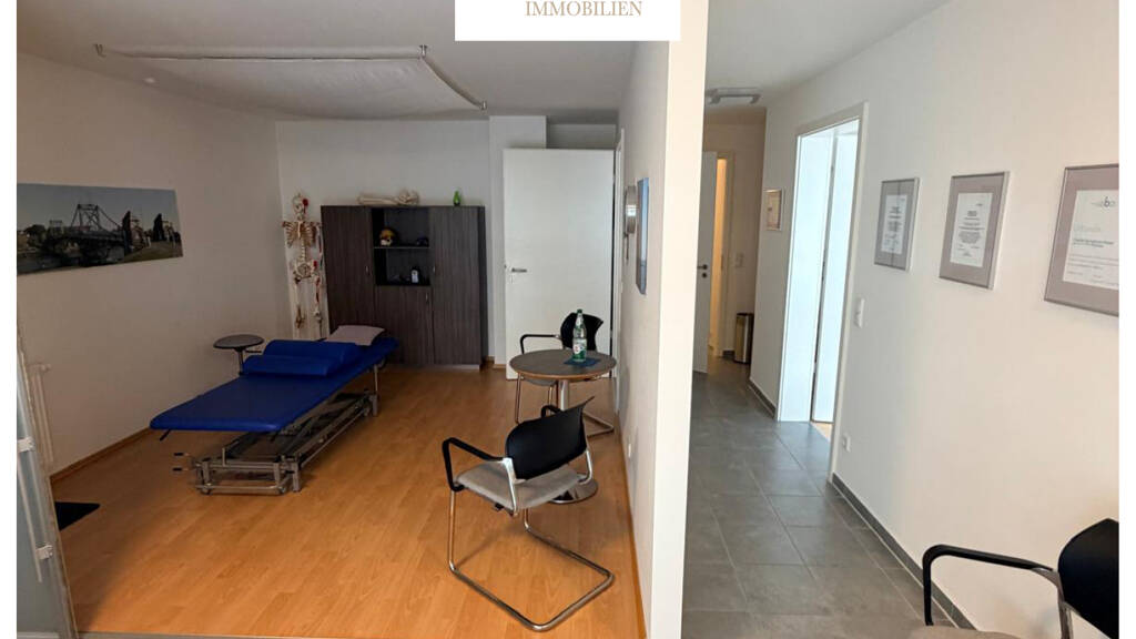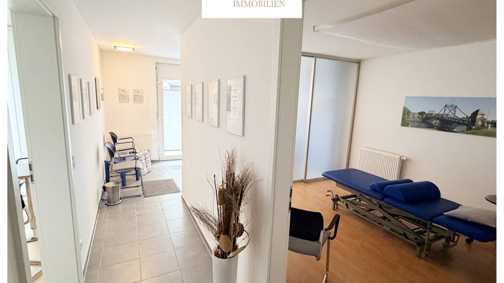 Die Eigentumswohnung ist im Erdgeschoss eines stilvollen Mehrfamilienhauses mit 7 Wohneinheiten. Die vielseitige Praxis, ist in der Teilungserklärung als Wohnung ausgewiesen und bedarf bei einer Umnutzung in Wohnen keiner Zustimmung der Gemeinschaft. Großzügiger Flur mit weißen Einbauschrank, geschlossene Küche mit bodentiefen Fenster, zwei Bäder, jeweils mit Waschbecken und WC, ein Bad mit bodengleicher Dusche. Behandlungszimmer mit Waschbecken, bodentiefen Fenster und Zugang zur überdachten Süd-Terrasse. Empfangsbereich mit ebenfalls bodentiefen Fenstern, ein weiteres Behandlungszimmer mit einer Glasschiebetür. Zu der Praxis/Wohnung gehört ein Kellerabteil ca. 9,9 m² und ein Carport der über einen direkten Zugang zum Garten verfügt. Die Praxis ist aktuell vermietet für 12.000,- € netto p.a. und wird frei bis 31.01.2028.