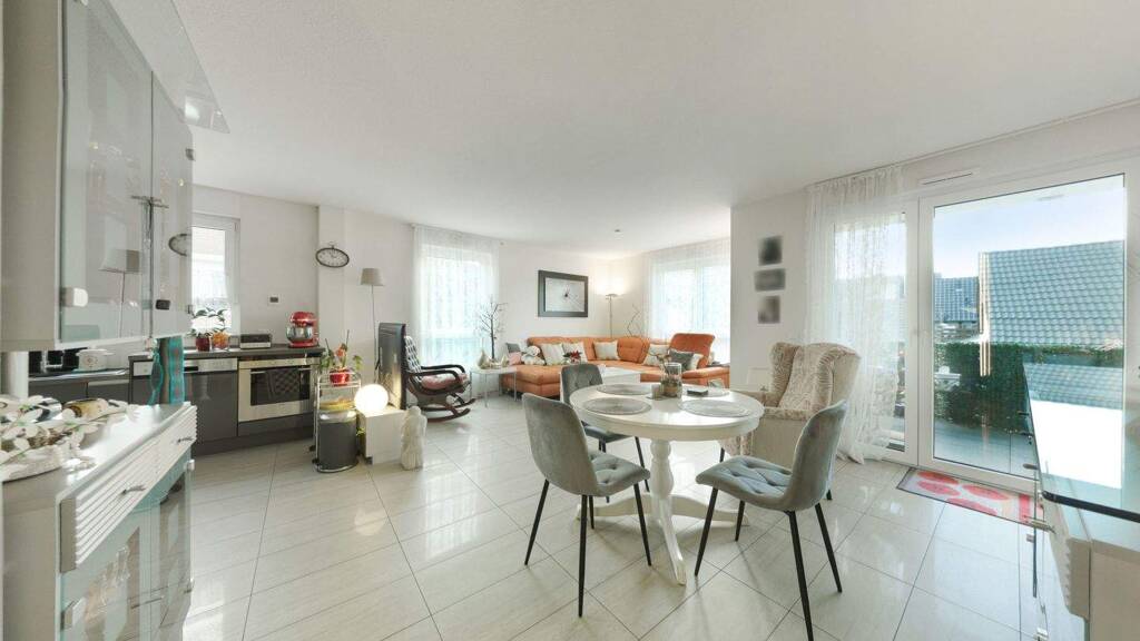 Der großzügige Wohn- und Essbereich mit offener Küche bildet das Herzstück der Wohnung und überzeugt durch seine Helligkeit und den durchdachten Grundriss. Von hier aus gelangen Sie auf den Balkon, der zusätzlichen Wohnkomfort im Freien bietet.
