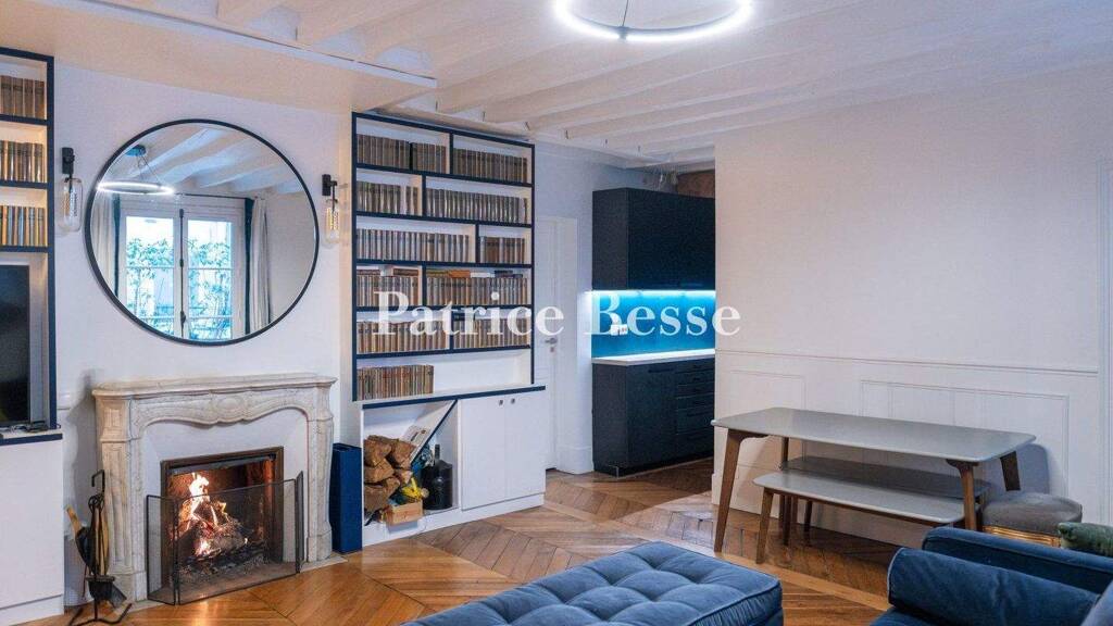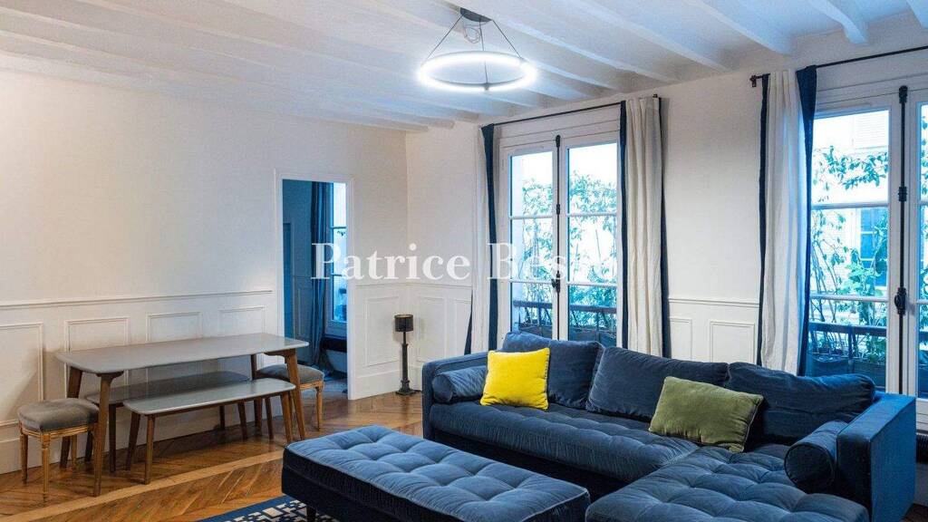 The edifice's plain facade reflects the classical Parisian architectural style of the 19th century. Its ashlar facing is remarkably well maintained. This facade is a token of the splendid building's construction quality. The windows are spaced out evenly. They are fitted with wrought-iron guardrails with fine motifs that are typical of the edifice's time of construction. The covered entrance, framed between two stone pilasters, leads into a paved inner court, which adds to the secrecy of this haven. The facade, which is timeless in style and impeccably maintained, echoes the calm, refined ambience of the apartment it hides inside. The apartment lies in the second building, at the back of a court dotted with plants. This secret haven of tranquillity is a rare asset in such a central district of Paris. A covered entrance takes you to the edifice. Beyond a gate, you get to a cosy open-air space where a lodge houses the letterboxes. A door that has an intercom and is fitted for security leads into the building. The apartment lies up on the first floor. You reach it via a staircase or a lift. The landing here connects to only two dwellings. The apartment offers an 88m² floor area. It was renovated by an interior designer in 2019. The delightful dwelling masterfully combines historical charm with modern touches. Right from the entrance hall and in all the other rooms, oak chevron parquet or oak strip flooring extends across the home. On the left, there is a shower room with a shower and lavatory. Just beyond it, there is a little room that could serve as an office or even as a small first bedroom. Straight ahead from the entrance hall, there is the second bedroom: the master bedroom - a haven of calm that looks out at the inner court. On the right, there is the lounge - the dwelling's centrepiece. This splendid lounge has exposed ceiling beams and a working fireplace with a white marble mantel. In-built storage spaces and bookshelves line the walls. Beyond the lounge, there is a fitted kitchen. It blends into the apartment discreetly and harmoniously. On the left, a door leads into a third bedroom. It has an en-suite bathroom with white tiles and a black and white mosaic floor. This bathroom has a window and a lavatory. A fourth bedroom can also be reached from the lounge. It has its own private shower room and lavatory. The apartment's well-designed layout would be perfect for a family, yet each occupant can enjoy their own privacy too.