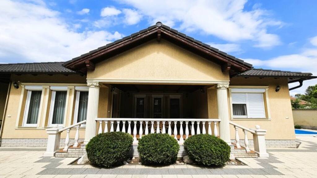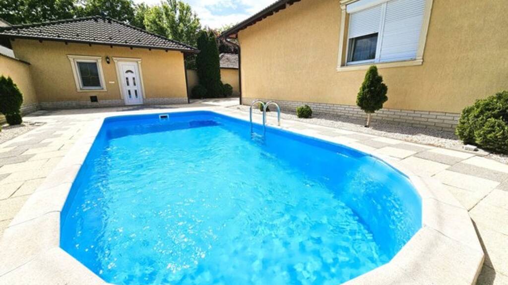 Energieausweis: ZU DIESER IMMOBILIE LIEGT DERZEIT NOCH KEIN ENERGIEAUSWEIS VOR. IN VORBEREITUNG. EXKLUSIVES EINFAMILIENHAUS MIT POOL MIT KOMPLETTMÖBELN ZU VERKAUFEN! ✨Nur 1 km vom Stadtzentrum entfernt, steht ein exklusives 150 m2 großes Einfamilienhaus aus dem Jahr 2006 in hoher Qualität mit Vollmöbeln zum Verkauf. Das Anwesen verfügt über Ziegelmauerwerk und Betonfliesen, befindet sich in ausgezeichnetem Zustand und wurde bis ins kleinste Detail entworfen und ausgeführt. ✨Das Hauptjuwel des Hauses ist das geräumige, sonnige Wohn-Esszimmer, in dem Eichenmöbel und einheitliche Polsterung eine elegante, freundliche Atmosphäre schaffen. Die moderne Küche aus Kirschholz ist mit einer Granit-Arbeitsplatte und Einbaugeräten (Kühlschrank, Geschirrspüler, Mikrowelle, Herd, Backofen) ausgestattet und damit eine perfekte Wahl für Kochbegeisterte. ✨Es gibt drei komfortable Schlafzimmer im Haus, von denen eines komplett mit Kirschholzmöbeln ausgestattet ist. Das Badezimmer verfügt über eine Hydromassage-Eckbadewanne, eine Duschkabine und Granitwaschbecken, um das Gefühl von Luxus zu verstärken. Das Haus ist praktisch aufgeteilt und verfügt über eine separate Toilette, einen Abstellraum, eine Waschküche, einen Flur und einen Flur. ✨Die 24 m2 große elektrische Innengarage mit Fußbodenheizung und Sektionaltor und die 27 m2 große überdachte Terrasse erhöhen den Komfort des Hauses zusätzlich. Heizung und Warmwasserversorgung erfolgen über eine Duval-Kombigastherme, die Zimmer verfügen über Heizkörper und die anderen Räume über Fußbodenheizung. Im Wohnzimmer sor Interesse? Bitte senden Sie uns ein VOLLSTÄNDIG augefülltes Kontaktformular zu, Sie erhalten dann umgehend ein ausführliches Exposé. ACHTUNG MAKLER: Wir freuen uns auf eine Zusammenarbeit. Alle Angaben stammen vom Verkäufer der Immobilie. Ohne Gewähr! blueHOMES AG ...die schönsten Häuser Europas...