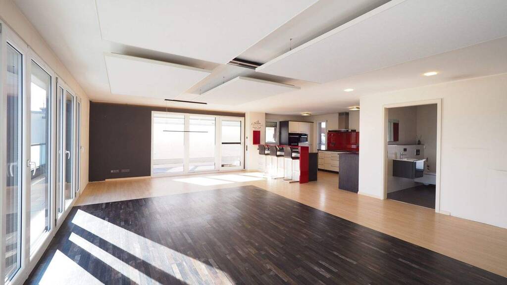 Das Gebäude umfasst insgesamt 10 Wohnungen und 4 Gewerbeeinheiten. Ein Personenaufzug bringt Sie direkt und bequem in Ihre Penthouse-Etage. Bereits beim Betreten offenbart sich der großzügige und offen gestaltete Wohn-/Ess-/Kochbereich mit rund 65?m² Wohnfläche. Die gesamte Wohnung ist mit hochwertigem Vinylboden, Fußbodenheizung, Klimaanlage, sowie einer modernen Elektro-Businstallation ausgestattet - ein Zusammenspiel aus Komfort, Technik und Ästhetik.