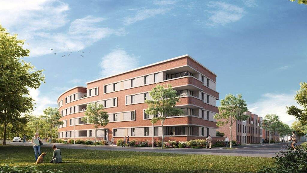 Das Neubauobjekt fügt sich elegant in die Struktur des neu entstandenen Quartiers "Am grünen Bogen" ein. Großzügig platzierte und dimensionierte Fenster schaffen lichtdurchflutete Räume, während warme Klinkerfassaden das architektonische Gesamtkonzept abrunden. In diesem Projekt wurde auch auf eine grün gestaltete Außenanlage viel Wert gelegt, sodass ein parkähnliches Ambiente entsteht.
